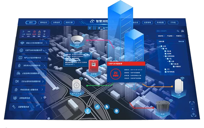 william威廉科技智慧消防解决方案,运用TurMass™ /LoRaWAN/Cat.1/NB-IoT物联网通讯技术,通过独立式感烟探测报警器、声光报警器、手动报警器、可燃气体探测报警器、电气火灾探测报警器、无线远程压力采集终端、无线液位远程采集终端、无线智能消防栓监测终端等为媒介,实现对于消防管理重点场所进行实施预防和管理的新型物联网解决方案。